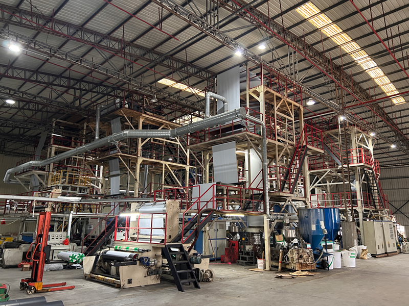 100+生産ライン(フィルムブロー機、袋製造機、プリンター、20+試験機器を含む)